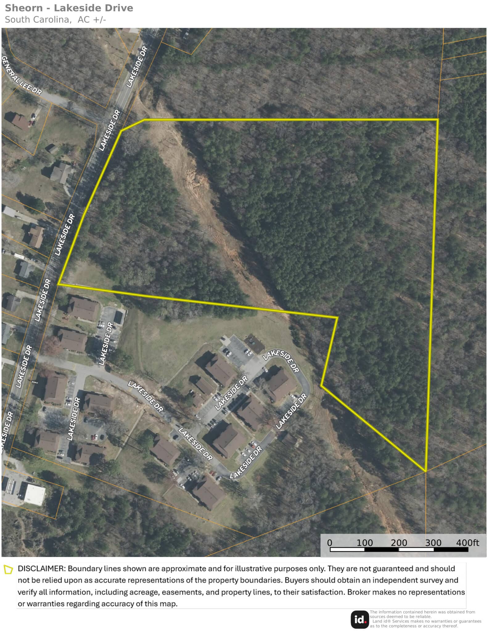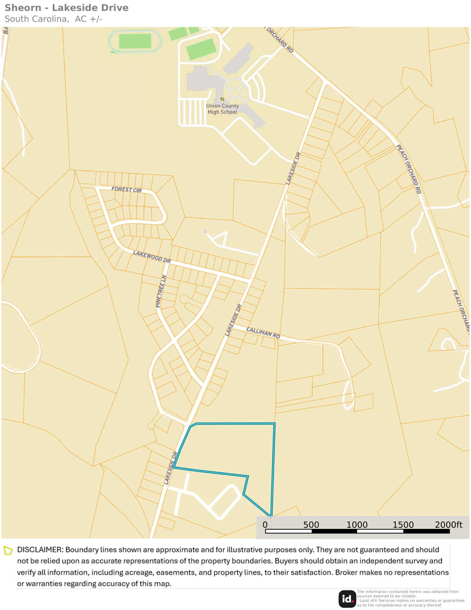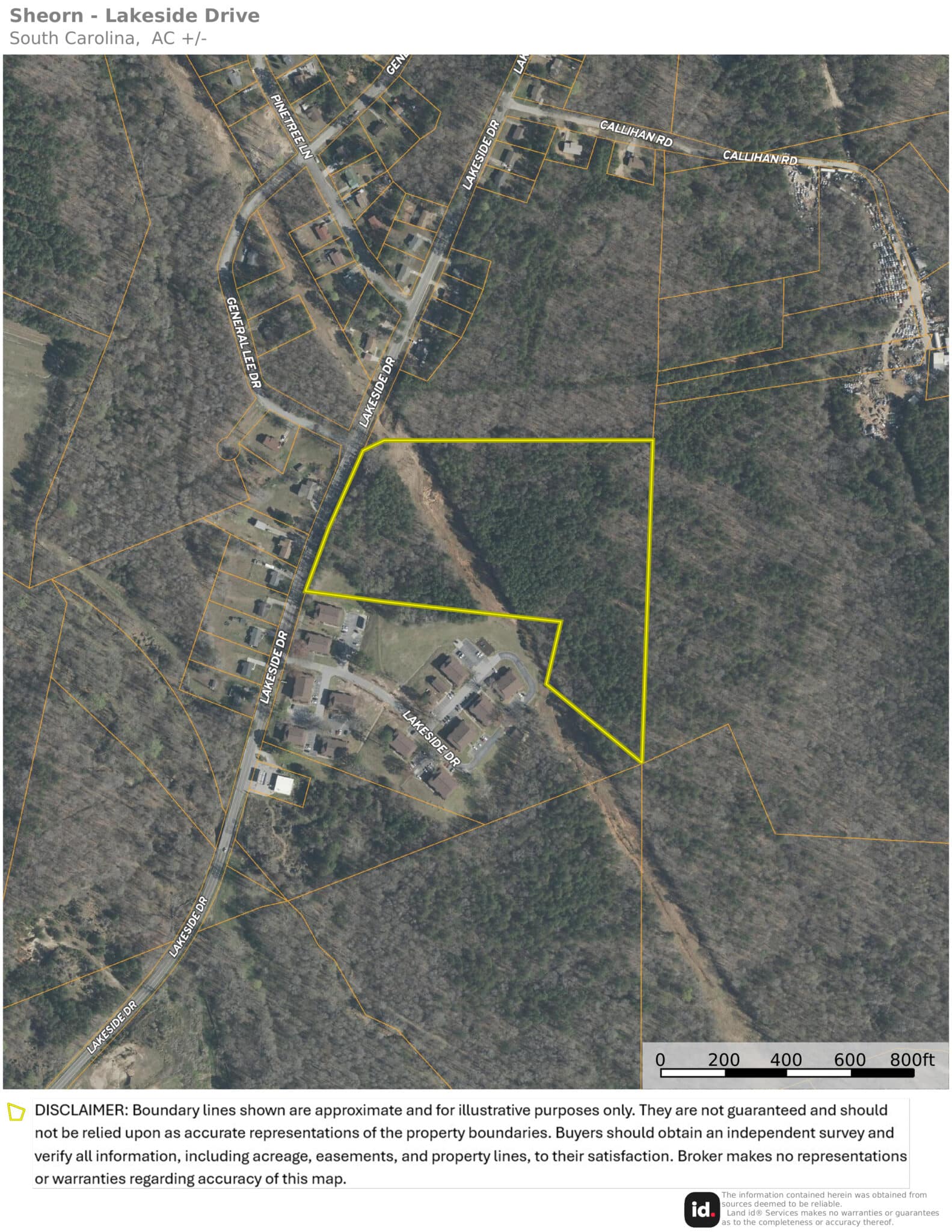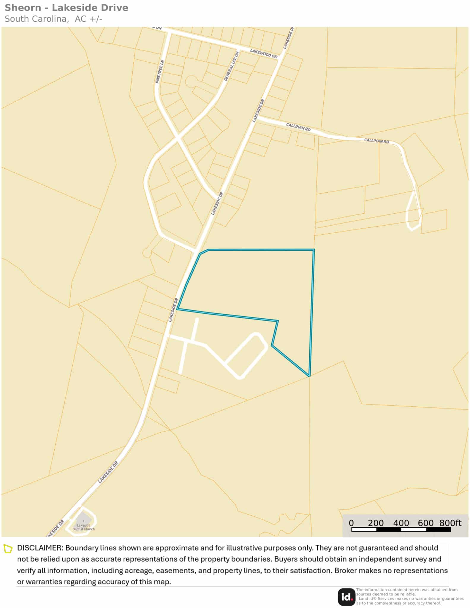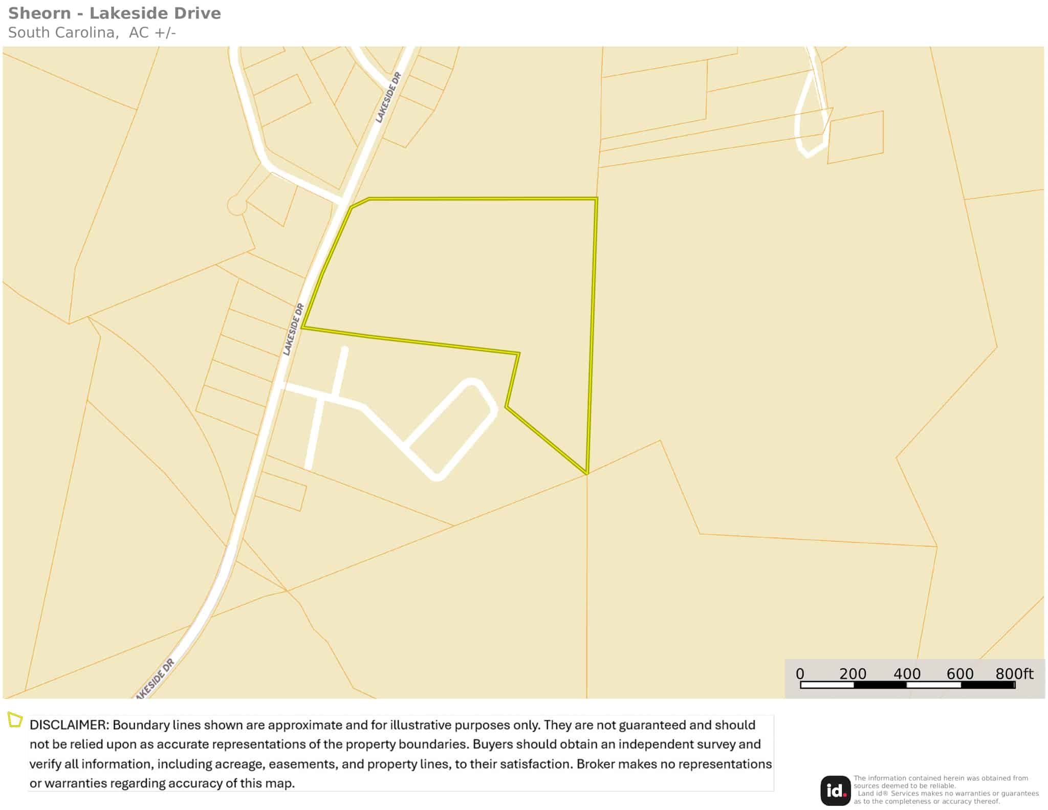 DISCLAIMER: Boundary lines shown are approximate and for illustrative purposes only. They are not guaranteed and should not be relied upon as accurate representations of the property boundaries. Buyers should obtain an independent survey and verify all information, including acreage, easements, and property lines from the appropriate local agencies designated to provide such information. The Broker makes no representations or warranties regarding accuracy of this map.