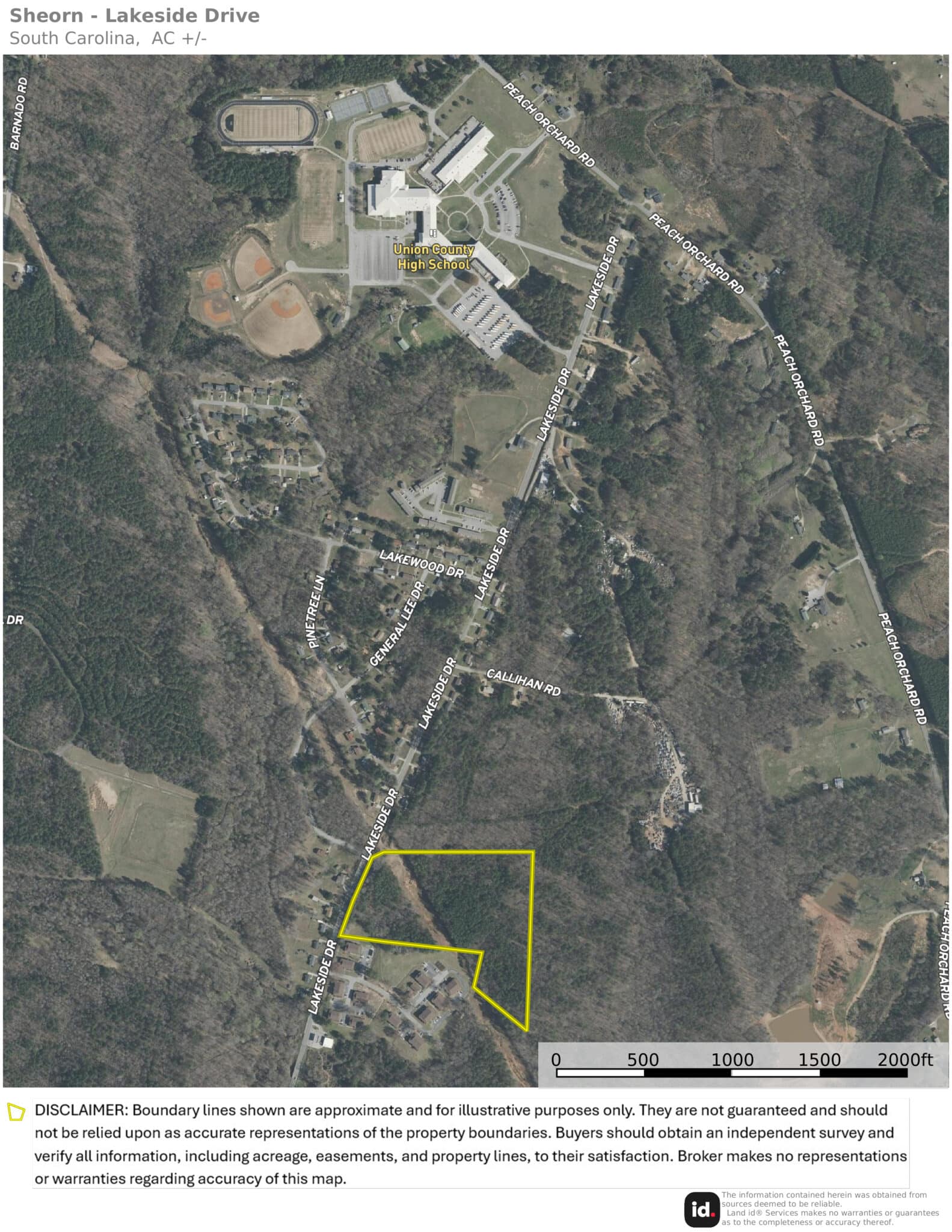 Directions: From downtown Union, SC take Thompson Blvd (Hwy. 18) north. Turn right onto Arthur Blvd and left onto Lakeside Drive. Property will be 1.30 miles on the right.