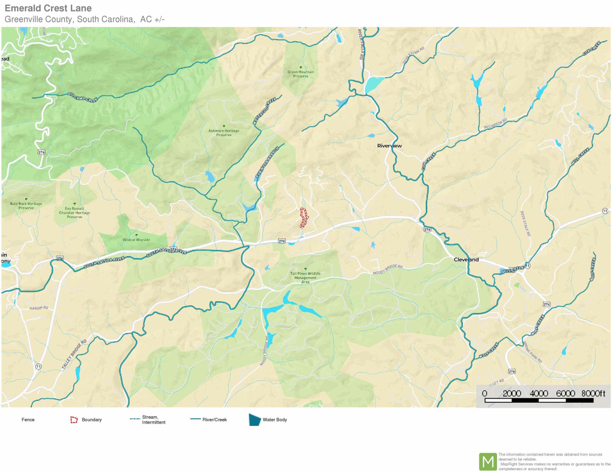 - State/County/City/Street/Zip: SC / Greenville / Cleveland / Emerald Crest / 29635