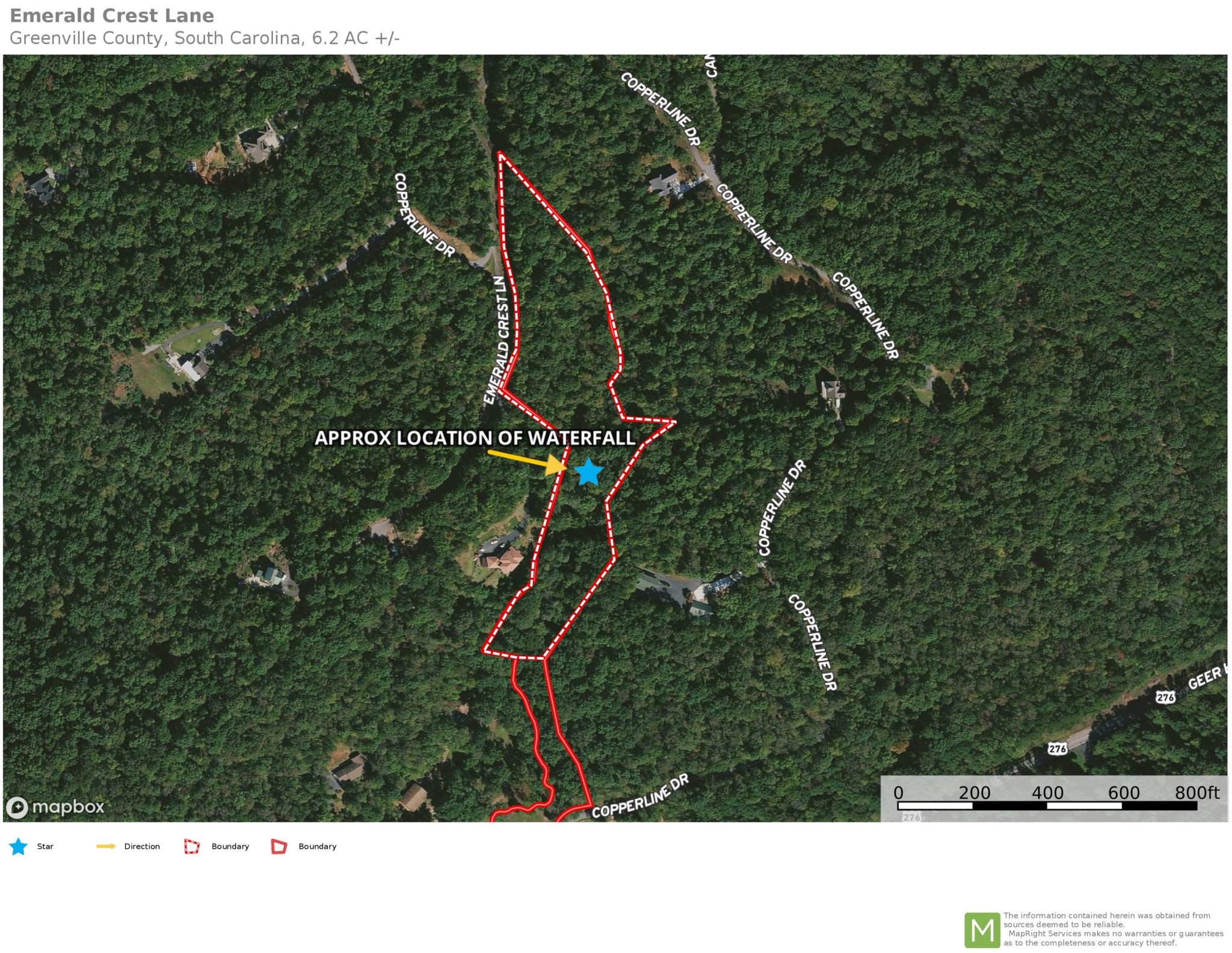 - Directions: From Greenville take HWY 276 through Marietta. Right on Copperline Drive into Emerald Falls. Follow Copperline until it splits with Emerald Crest Lane on the left (straight). Copperline goes to the right. Property is on the left.